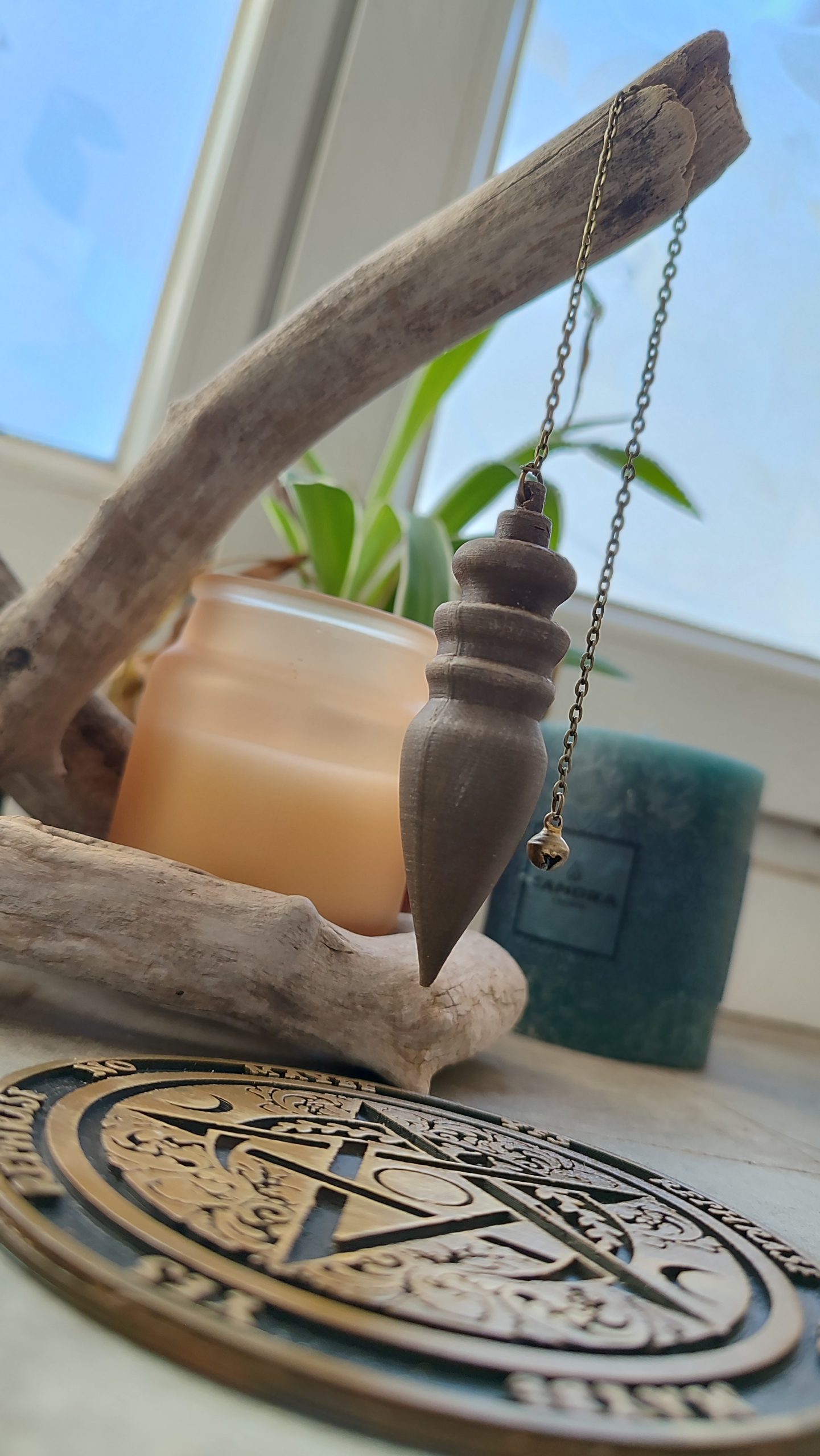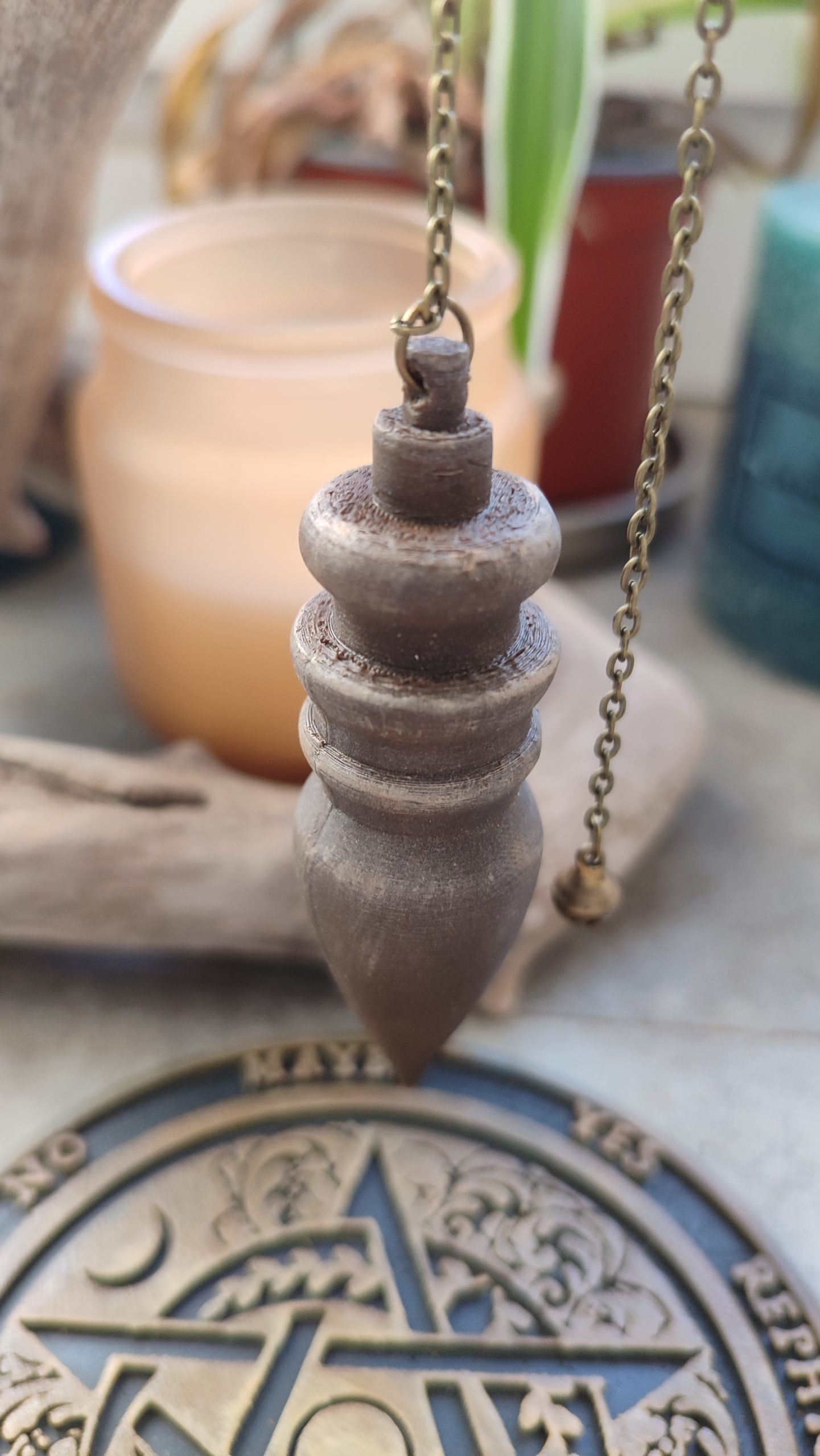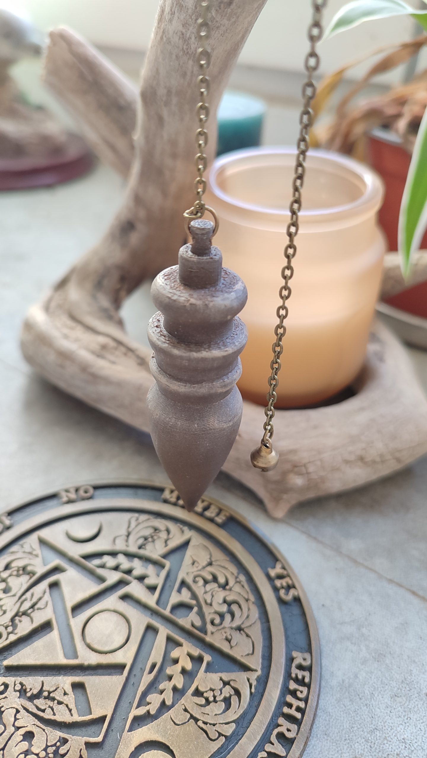 Ce pendule est conçu pour la pratique de la radiesthésie et l’utilisation sur planche divinatoire. Sa forme allongée avec pointe fine permet un mouvement régulier et une bonne lisibilité des oscillations. Le modèle est fabriqué en PLA biosourcé par impression 3D FDM. Le matériau est issu de ressources renouvelables. Après impression, la surface est préparée […]