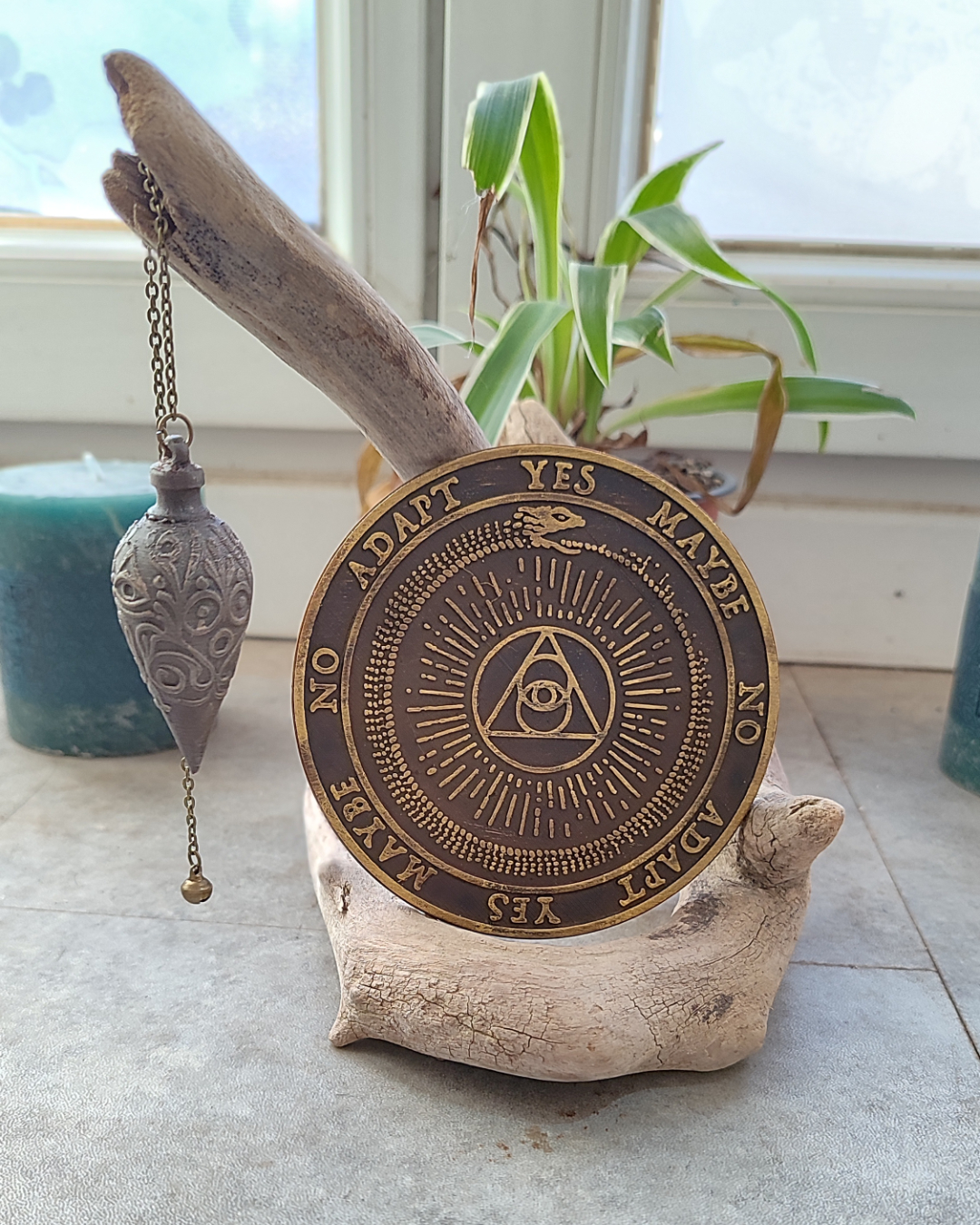 Support de radiesthésie compact conçu pour une lecture claire et structurée du pendule.